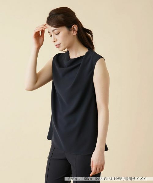 美しいドレープのアシンメトリーネックが柔らかなニュアンスを生み出すノースリーブカットソー。身幅には程よくゆとりを持たせ、ボディラインを拾わずに着こなせるようデザインしています。シンプルなパンツですっきりとまとめると、バランスのよいコーディネートが完成します。------------------------------------着用シーズン:初夏伸縮性:あり透け感:なしポケット:なし生地の厚さ:やや薄手お取扱い方法:ウォッシャブル(手洗い可)-------------------------------------※商品の色味は、撮影場所や光のあたり具合、お客様のお使いの機器により色味が違って見える場合がございます。予めご了承ください。※定価(税込)は、2023年06月29日のセール開始前の店舗における販売価格です。手洗い可酸素系漂白可タンブル乾燥不可つり干し(日陰)アイロン低温120℃までドライクリーニング可ウェットクリーニング(弱い処理)