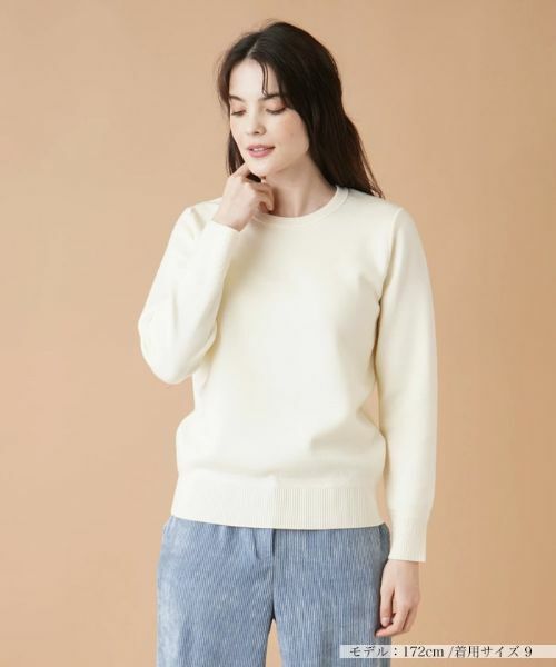 キレイめにもカジュアルにもフレキシブルに取り入れやすい、着回し力に優れたクルーネックニットプルオーバー。ネックラインを浅めに設定しつつ、シルエットには程よくゆとりをもたせ、肩肘張らないリラクシーな着心地を叶えました。余計なデコレーションのないすっきりとしたデザインでトレンドに左右されることなく、長く愛用できそうなアイテムです。