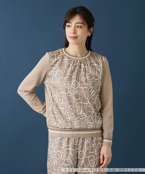 無地のニット地をベースに、フロントに独創的なジオメトリック柄を配した異素材切り替えのニットプルオーバー。微細な光沢を放つ上品なテキスタイルが、ダイナミックなパターンと融合し、新鮮なスタイルを生み出します。すっきりとした浅めのクルーネックで品よく落ち着いた印象にまとめました。一枚での着用はもちろん、スーツやジャケットのインナーとしても存在感を発揮し、洗練されたアクセントを添えてくれるアイテムです。