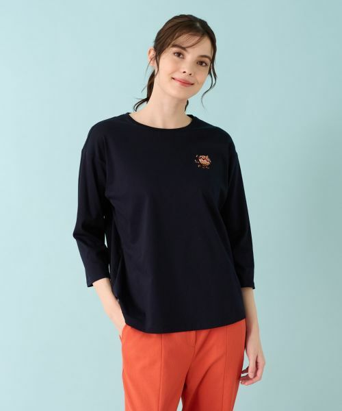 コットンスムースのジャージー素材を使用した、7分袖インナー。胸元には気球モチーフの刺しゅうを施しポイントにしています。インナーアイテムとして便利な一枚です。