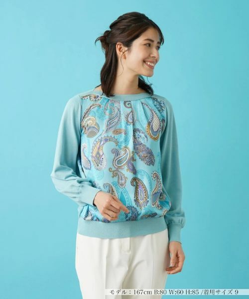 フロントに施されたペイズリー柄が目を惹く、アーティスティックな雰囲気を醸し出した異素材切り替えのニットプルオーバー。統一感のある上品なカラーでまとめており、独特のバランスがさりげなくセンスを引き立てます。袖には程よいリラックス感をもたせ、肩肘張らないナチュラルな佇まいに。パンツ、スカートを問わずボトムスと自在にマッチし、多彩なスタイリングを楽しめる着回し力の高いアイテムです。アウターとのレイヤードコーディネートのアクセント使いにもおすすめです。