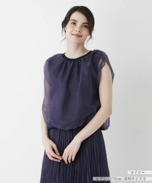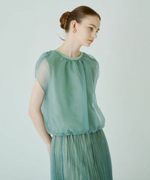 ツヤ感のあるシアー素材がトレンドライクに映えるノースリーブカットソー。内側には柔らかなコットン素材を使用しているから優しい着用感で、毎日のスタイリングにも気軽に投入できるのが嬉しい。ふんわりとしたブラウジングシルエットも優雅な一着。