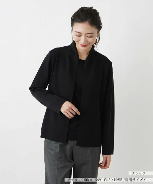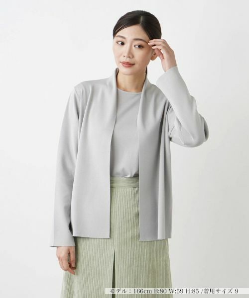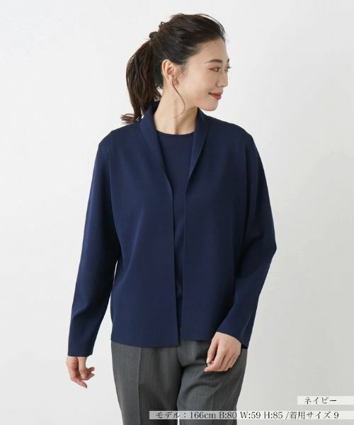 やや薄手のニット素材を使用した、シンプルなデザインのカーディガン。フロントは前留めなしのノーボタン仕様ですっきりとした印象に。きちんと感のあるジャケットライクなシルエットでスマートに仕上がり、お手持ちのニットやカットソー、ブラウスに重ねるだけでファッション上級者らしいレイヤードスタイルが完成します。デイリーからオフィスカジュアル、週末のお出かけまで多彩なシーンで活躍してくれそうな一枚。