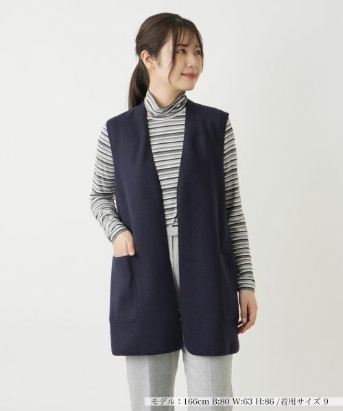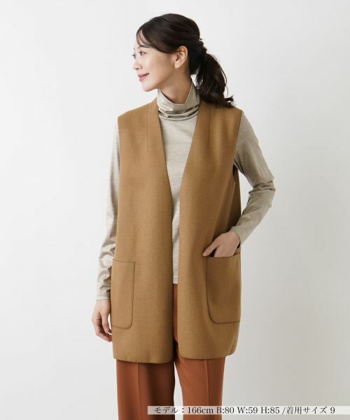 表裏でテイストが異なる、リバーシブル仕様で楽しめるVネックベスト。シャープなネックラインが顔周りをすっきりと引き立て、これからの季節のカジュアルなコーディネートにスマートさをプラス。ヒップまで隠れる絶妙な丈感がさりげなく体型をカバーしながら、すっきりとしたシルエットをメイク。気分やスタイリングに合わせて着こなしの幅が広がり、自在に上級者らしいアレンジを楽しめるアイテムです。