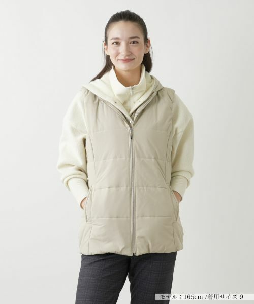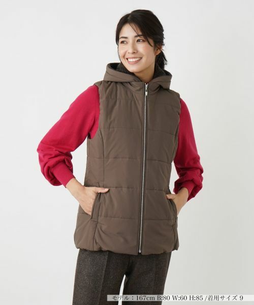 フードのオンオフにより表情がお好みでアレンジできるベスト。シンプルなインナーにさっと重ねるだけで、技ありのレイヤードスタイルが完成します。フロントはジップアップ仕様となっており、着脱がスムーズでストレスフリーな着心地を実現。フードの内側にはふんわりとしたボア素材を施しており、暖かさとリュクスな質感をプラス。機能性とデザイン性を兼ね備えた、デイリーコーデに活躍するアウターです。