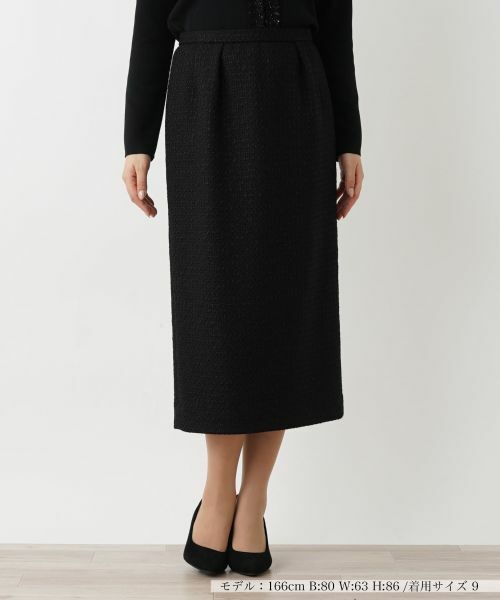 やや厚手のざっくりとしたツイード生地で仕立てた、落ち着いたシックな色合いのミモレ丈スカート。シルエットはすっきりとした直線的なラインを描き、大人の女性らしい上品な佇まいに。後ろ裾中央にはスリットを入れ、スムーズな足捌きにも配慮しています。ビジネスからパーティー、セレモニーまで多彩なシーンで活躍してくれそうな一枚です。後ろホック&ファスナーにより開閉が可能。------------------------------------着用シーズン:冬伸縮性:なし透け感:なしポケット:なし生地の厚さ:やや厚手裏地:ありウエスト:伸縮性なし-------------------------------------※商品の色味は、撮影場所や光のあたり具合、お客様のお使いの機器により色味が違って見える場合がございます。予めご了承ください。家庭洗濯不可漂白不可タンブル乾燥不可アイロン低温120℃まで石油系溶剤ドライクリーニング弱ウェットクリーニング不可
