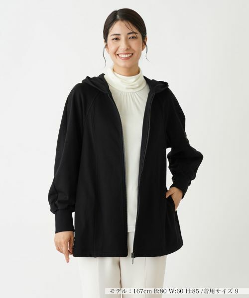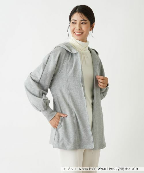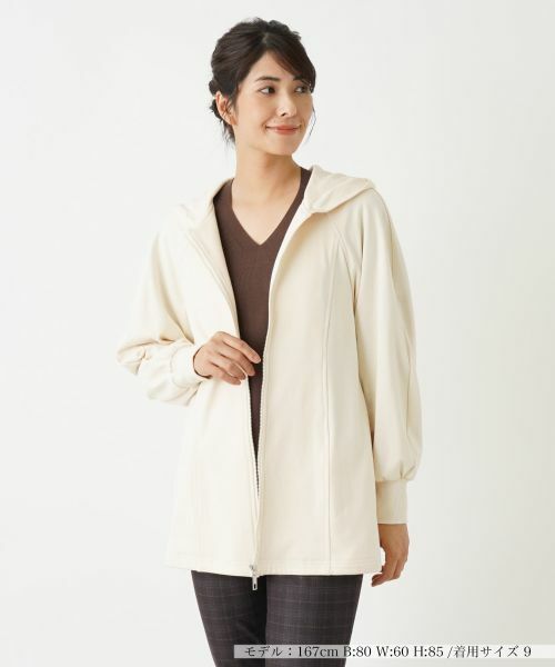 ビッグフードがポイントになった、柔らかなスウェット素材のジップアップジャケット。巧妙なパターンメイクにより適度なリラックス感のあるシルエットを構築。袖はラグランスリーブでゆとりをもたせ、ストレスフリーの着心地を叶えました。いつものカジュアルスタイルに取り入れるだけで、大人の可愛らしさをプラスできます。無駄な装飾を省いたミニマルなデザインで、インナーやボトムスともコーディネートしやすいアイテムです。