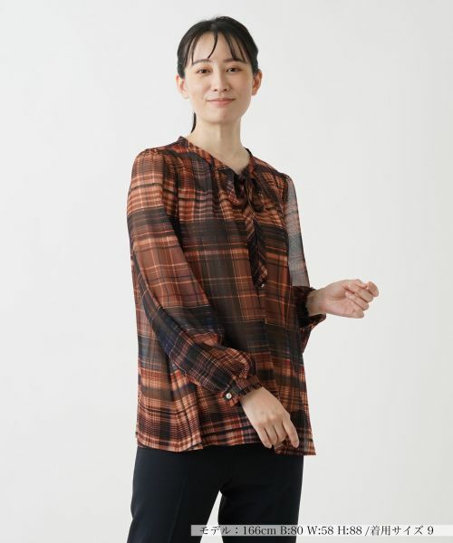 秋冬シーズンらしいクラシカルなチェックが彩るボウタイブラウス。さらりとした薄手のファブリックを用い、ボリュームスリーブとふわりとしたシルエットでリラックス感たっぷりにデザインしています。シンプルなパンツでまとめるのはもちろん、フェミニンなスカートを合わせた大人エレガントな着こなしもおすすめです。