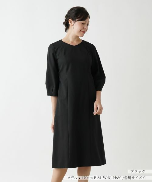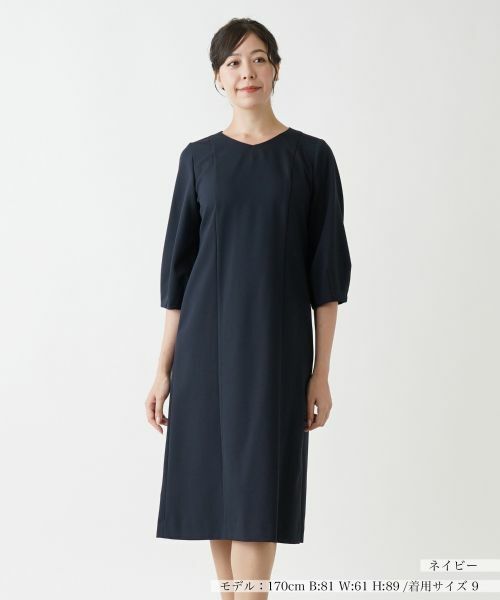 落ち着いたシックな色合いでデザインした、ミディアム丈のサックワンピース。ふんわりとしたクロップド丈のバルーンスリーブがリラクシーな印象を与え、ストレスフリーの着心地を実現します。浅めのVネックがデコルテをキレイに覗かせます。一枚での着こなしはもちろん、カーディガンやジャケット、コートとのレイヤードスタイルにもおすすめです。バックファスナーにより着脱が可能。