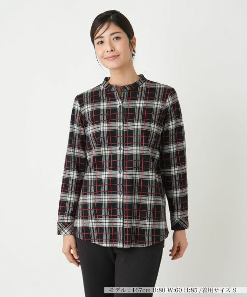 クラシカルな趣のタータンチェックが描かれたバンドカラーブラウス。柔らかなコットン素材を使用しており、心地よい温もりを感じられる一枚です。程よい丈感でヒップラインをさりげなくカバーし、自然なシルエットを演出してくれるのも嬉しいポイント。シンプルなパンツと合わせるだけで品よくまとまり、スカートを持ってくれば大人フェミニンなスタイルに。カジュアルからきれいめまで多彩なコーディネートを楽しめる一枚です。
