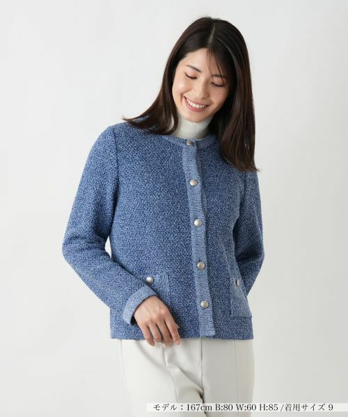ツイード調の編み地が上品な雰囲気を醸し出すカーディガンです。ゴールドのボタンが高級感をプラスし、オン・オフ問わず使える一枚。ブラックのスラックスやタイトスカートと合わせて、大人のきれいめコーデを楽しめます。※定価(税込)は、2025年6月27日のセール開始前の店舗における販売価格です。家庭洗濯不可漂白不可タンブル乾燥不可アイロン低温120℃まで石油系溶剤ドライクリーニング弱ウェットクリーニング不可