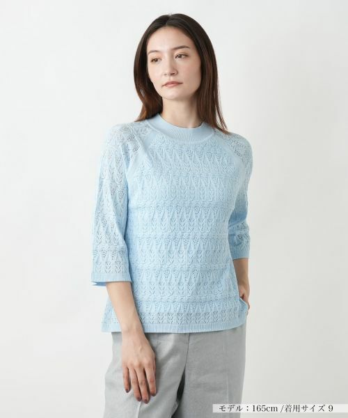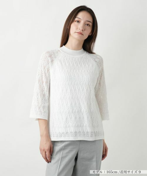 繊細なレースデザインがエレガントな印象を与えるトップスです。袖部分の透け感が程よい抜け感を演出し、女性らしさを引き立てます。タイトスカートやワイドパンツと組み合わせれば、洗練された大人のスタイルに。※定価(税込)は、2025年6月27日のセール開始前の店舗における販売価格です。家庭洗濯不可漂白不可タンブル乾燥不可アイロン低温160℃まで石油系溶剤ドライクリーニング弱ウェットクリーニング不可