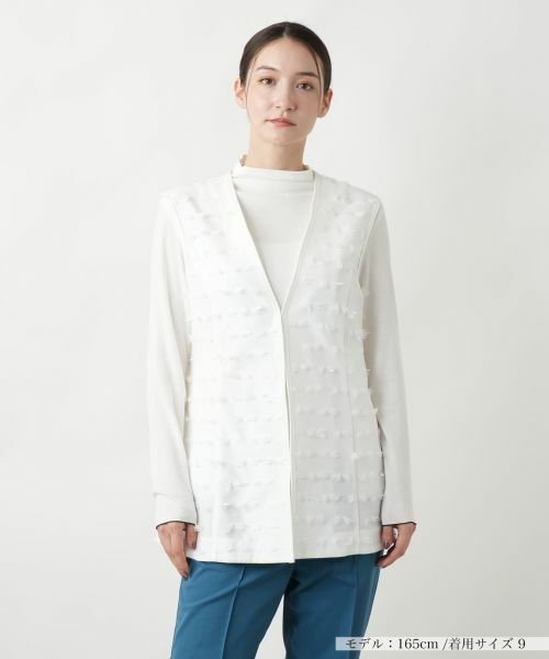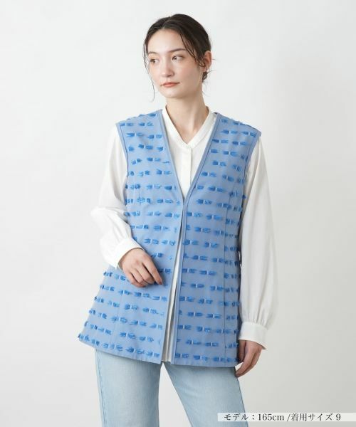 洗練されたディテールが光るベスト。シンプルなデザインながらも、繊細な素材の質感がスタイルに奥行きを与えます。どんなアイテムとも相性がよく、カジュアルからエレガントな着こなしまで幅広く活躍。羽織るだけでこなれた印象を演出し、季節の変わり目のレイヤードスタイルにもぴったりな一着です。※定価(税込)は、2025年6月27日のセール開始前の店舗における販売価格です。家庭洗濯不可漂白不可タンブル乾燥不可アイロン低温120℃まで石油系溶剤ドライクリーニング弱ウェットクリーニング不可