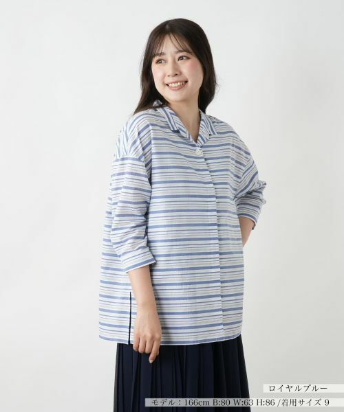 リズミカルなマルチボーダーが爽やかに映えるオープンカラーシャツ。ドロップショルダーで肩ラインを落とし、程よくゆとりをもたせたシルエットがこなれたリラクシーな雰囲気を演出。サイドスリットを施した裾は動きやすさと軽やかな抜け感を作り出します。さっと羽織るだけでスタイリングに上級者らしい印象を与え、これからの季節のデイリーなコーディネートに気軽に取り入れやすい一枚です。