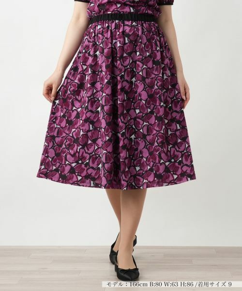 手描き風の華やかなフラワー柄が遠目からでも視線を惹きつける、ミディ丈のフレアスカート。ふんわりとしたシルエットが自然に生まれ、動くたびに優雅な揺れ感を演出します。ストレッチ性に優れたパワーネット素材を使用し、軽やかでしなやかなはき心地を実現しました。ウエストは総ゴム仕様でストレスフリーに心地よくフィット。タックインスタイルならウエストラインを引き立てつつ、脚長見せ効果も期待できそうです。