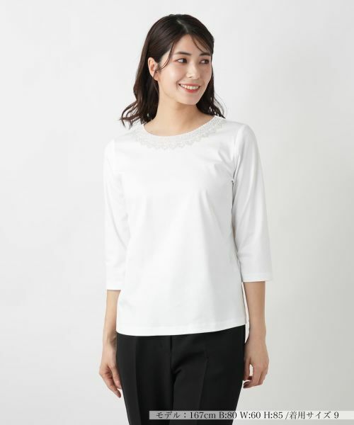 刺繍クルーネックカットソー【Leilian WHITE LABEL】