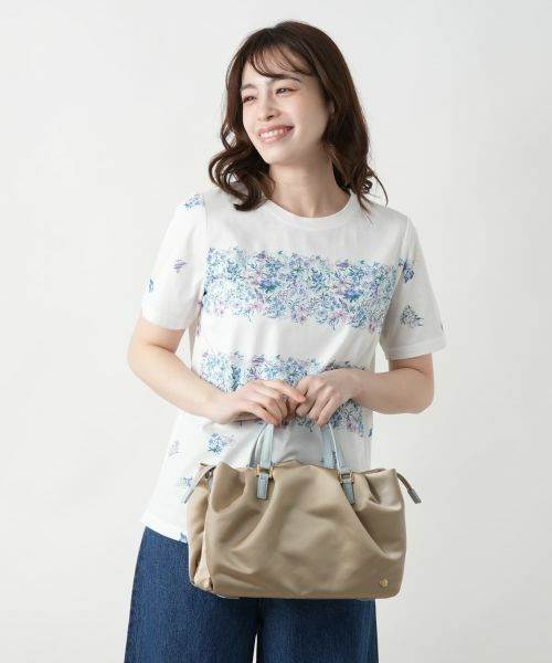 上品な素材感を柔らかなフォルムで仕上げた、持ちやすいコンパクトなサイズ感のトートバッグ。カジュアルからきれいめまで幅広いスタイリングにマッチするデザインに。収納部は三層構造になっており、荷物をすっきりと整理できるのがポイント。中央のジップ付きポケットには貴重品を、サイドのオープンポケットにはスマートフォンや小物を入れるなど、用途に応じて使い分けられる設計になっています。付属のショルダーストラップを装着すれば肩掛けすることも可能。