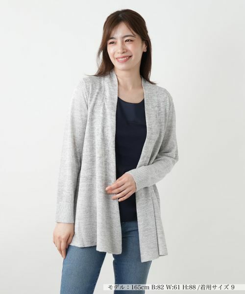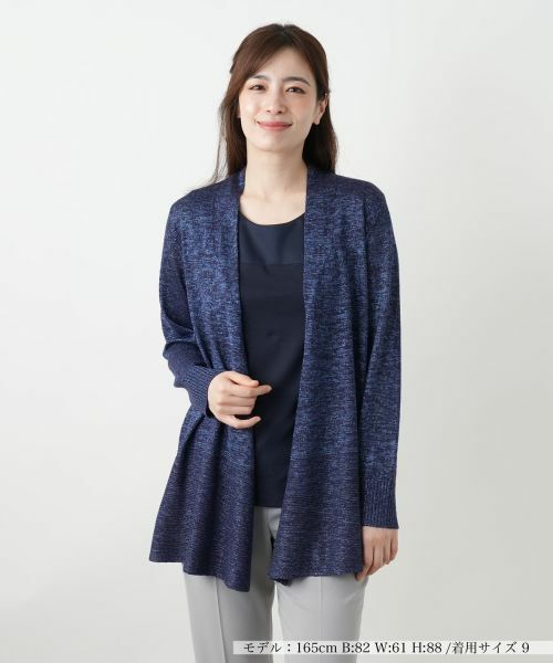 微細な光沢を放ち、エレガントな雰囲気を纏う、大人の女性にふさわしいトッパーカーディガン。さらりと羽織るだけでこなれた印象を演出し、洗練された佇まいに。レーヨンにポリエステルをブレンドして編み上げたニットは、しなやかなドレープ感と軽やかな着心地が魅力。滑らかな風合いが肌に心地よく、ストレスフリーな着用感を叶えます。ベーシックなパンツルックはもちろん、フェミニンなワンピースやスカートとも相性がよく、オンオフ問わず幅広いシーンで活躍する一枚です。