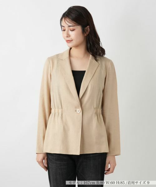 さらりとした薄手の軽やかな素材感がシーズンらしさを感じさせる、テーラードジャケット。端正なカラー&ラペルがきちんと感をもたらし、スマートで洗練された印象へと導きます。ウエスト部分にはゴムシャーリングを施してくしゅっとさせ、締め付け感なくフィット。女性らしい立体感のあるシルエットを描きながらも、快適な着心地をキープします。前ウエスト両サイドにはシンプルなスリットポケットをバランスよくレイアウト。オンにもオフにもフレキシブルに活躍してくれそうな一着です。