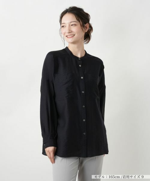 上質なシルクをブレンドした、ほんのり光沢とナチュラルなシワ感を併せ持つ生地感が特徴のロング丈バンドカラーシャツ。肩の力を抜いたようなドロップショルダーのシルエットが、着る人にストレスフリーのリラックス感をもたらします。バック中央には大胆にプリーツを施し、立体感のあるシルエットを演出。裾のサイドスリットがこれからの季節らしい程よい抜け感を与え、前開きのボタンをラフに開けて羽織りとしても活躍します。