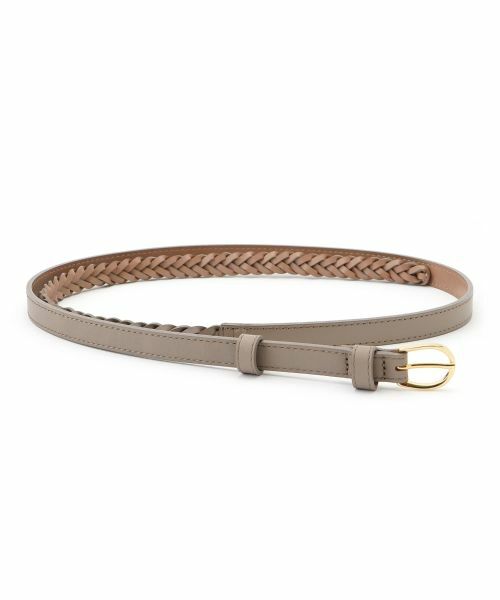 編み込みのデザインがさりげない個性を演出するナローベルト。表側は滑らかな質感のレザーに繊細な編み込みを組み合わせることで、奥行きのある表情を生み出しました。煌めくラウンドバックルが上品なアクセントとなり、スタイリングに優雅なニュアンスをプラス。パンツやスカートにはもちろん、ワンピースやチュニックのウエストマークとして取り入れれば、シルエットにメリハリが生まれスタイリッシュな着こなしが完成します。