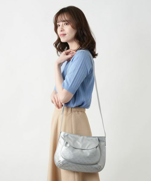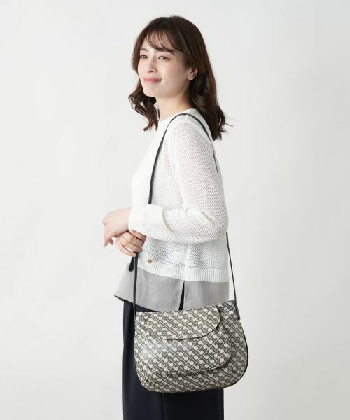 エレガントなモノグラム柄が施されたラウンドショルダーバッグ。丸みを帯びたころんとしたフォルムが可愛らしく、程よいコンパクトなサイズ感が持ちやすさを叶えます。開口部はファスナー仕様になっており、中身をしっかりと守りながらスムーズな開閉が可能。内外にジップポケットを備えているため、小物を整理しやすく使い勝手も抜群。軽量で手に取りやすく、肩掛けするだけで気軽にお出かけスタイルが完成します。