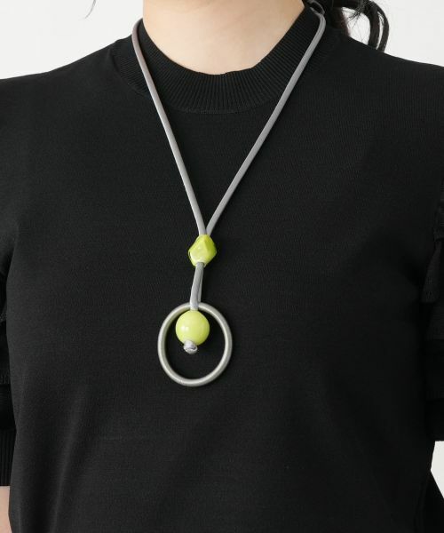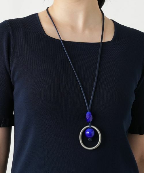 ヴェネツィアンガラスとステンレスコイルを組み合わせたユニークなモチーフが、さりげなく個性を引き立てるコードネックレス。異素材のコントラストが生み出す洗練されたデザインは、シンプルな装いに程よいアクセントをプラス。華美になりすぎずナチュラルな存在感を放つので、デイリーコーデの仕上げにもぴったり。お好みに合わせて長さを調整できる仕様になっており、さまざまなネックラインのトップスと相性抜群です。