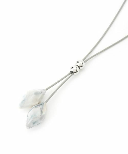 ナチュラルな風合いのストーンモチーフがあしらわれた、ラリエット風デザインのスライドネックレス。アジャスター付きで長さを自在に調整可能。シンプルな中に個性が光るスタイルで、首元の表情をさりげなく引き立てます。Tシャツやブラウスにさらりと重ねるだけで、洗練された抜け感をプラス。デイリーカジュアルからリゾートまで多彩なシーンにマッチし、美しい色合いがこれからの季節にぴったりの爽やかさを演出します。