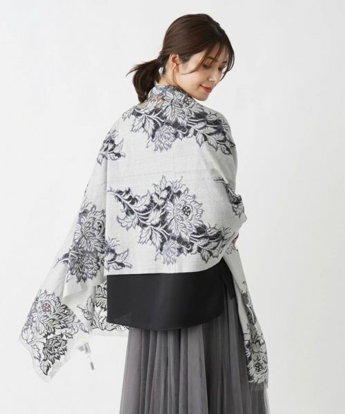 繊細な花柄が美しい上品なストール。コーディネートのアクセントになり、華やかな印象をプラスします。パーティーシーンにもおすすめ。家庭洗濯不可漂白不可タンブル乾燥不可アイロン低温160℃まで石油系溶剤ドライクリーニング弱ウェットクリーニング不可
