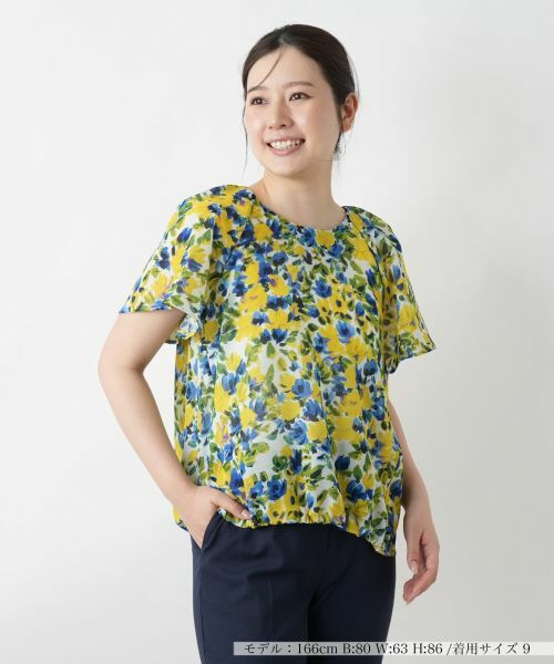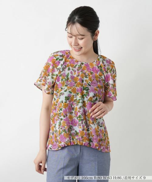 絵画のように鮮やかなフラワープリントが目を惹く、薄手の軽やかなブラウス。ふわりと風をはらむようなエアリーなスリーブが、涼やかな季節感を演出します。フロントヘムにはゴムを配し、さりげなく立体感のあるシルエットに。パンツにもスカートにもナチュラルにマッチする着丈で合わせやすく、一枚で着映えする存在感がありながら重ね着にも馴染み、デイリーからお出かけシーンまで重宝します。