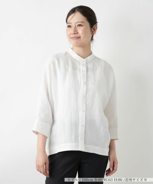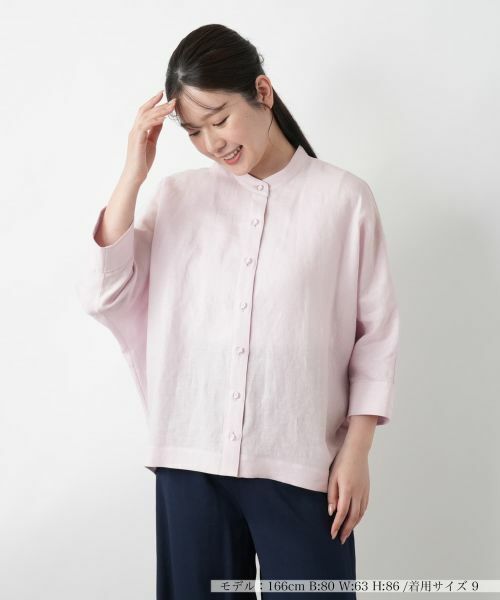 すっきりとしたクロップドスリーブにバンドカラーを合わせた、洗練されたナチュラルな風合いのブラウス。素材には清涼感のある麻を使用し、肌離れの良い軽やかな着心地を叶えます。後ろ裾をやや長めに設定することで、リラクシーなシルエットで横姿にもニュアンスを添えるデザインに仕上げました。シンプルで合わせやすく、一枚着としてはもちろん、羽織りとしても活躍するアイテムです。
