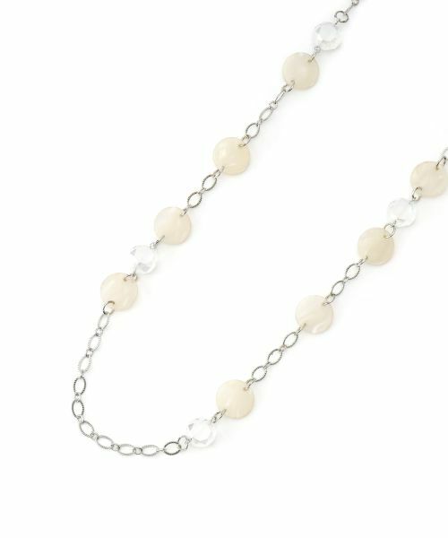 ランダムに配置されたパーツがコーディネートにこなれ感をプラスするロングネックレス。抜け感のある軽やかなデザインは日常使いにぴったりです。お手持ちのネックレスとの重ね付けもおすすめです。