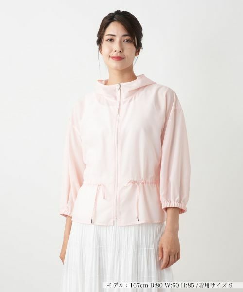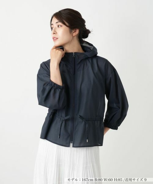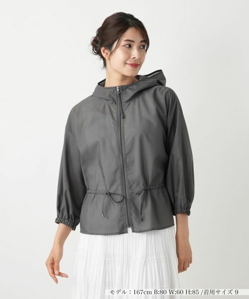 ほんのり透ける軽やかな素材感のフーデッドジャケット。やや薄手の生地感で、季節の変わり目にも活躍してくれそうです。ウエストにはドロストリボンをあしらい、シルエットに変化をつけて楽しめるデザイン。袖口にはゴムが入り、程よいフィット感とラフさを両立しています。フロントはファスナー仕様で着脱もスムーズ。デイリーなコーディネートに取り入れやすい、機能性と洒落感を兼ね備えたアイテムです。