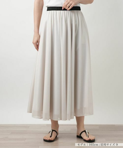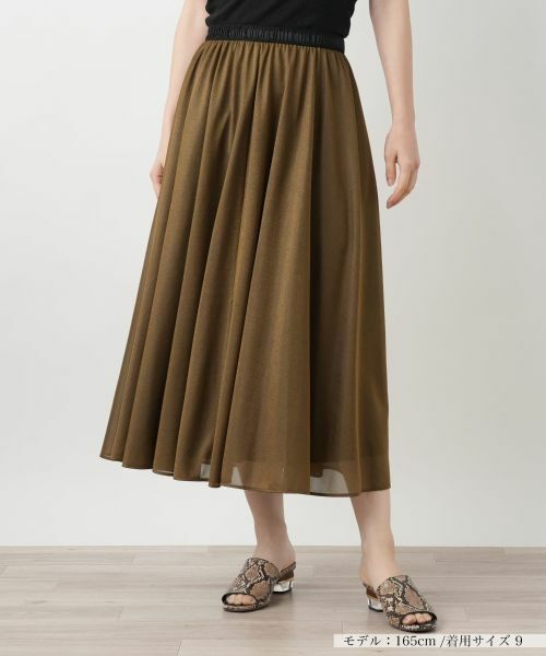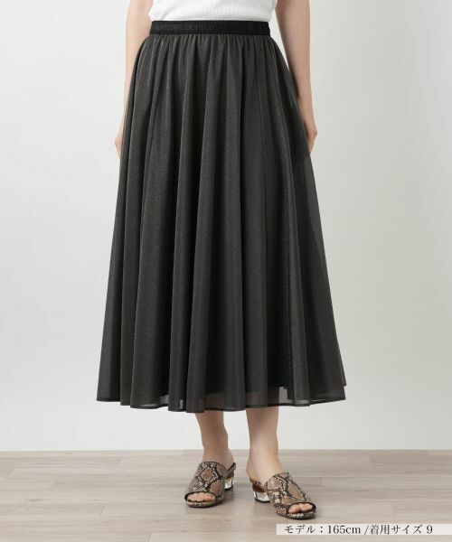 軽やかな揺れ感とさりげなく煌めくラメ感が魅力のフレアロングスカート。分量感のあるシルエットが、歩くたびにふわりと広がり、女性らしいやわらかさを演出します。ウエストは総ゴム仕様で、ストレスフリーな穿き心地を実現。裏地付きで透け感を気にせず着用でき、夏場も快適な薄手素材が涼やかさをキープします。きちんと感のあるブラウス合わせはもちろん、カットソーやニットとも相性が良く、デイリーからお出かけまで幅広いシーンで活躍してくれます。