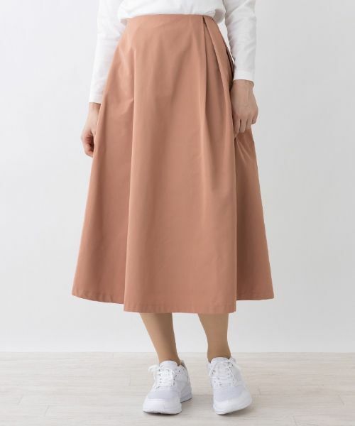 適度なハリと光沢感がレディライクなアシンメトリーデザインのフレアスカート。フロントの左側のみにタックデザインを施し、より立体感と表情のあるデザインに仕上げました。適度なボリュームと存在感のあるスカートは優雅な雰囲気を演出してくれます。