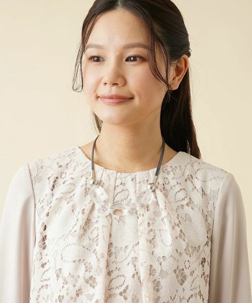 大きさの異なるクリアな樹脂パーツを連ねた、清涼感のあるデザインに心惹かれるネックレス。シンプルなコードとの組み合わせも目を惹き、洗練された雰囲気を醸し出すデザインです。無地のTシャツに合わせるだけでもエレガントなコーディネートに仕上がります。
