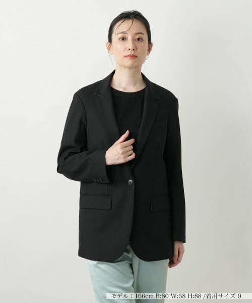 ウール混で秋冬に重宝するスタンダードなテーラードジャケット。細目のラペルで顔周りをすっきりと魅せてくれるのも嬉しいデザインです。オフィスやちょっとしたお招れに重宝する一着。