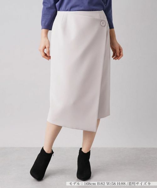 エレガントな女性らしい佇まいで楽しめる、すっきりとしたタイトシルエットのミディ丈ラップスカート。ハイウエストで穿けるからスタイルアップ効果も期待できそうです。サイドファスナーにより着脱がスムーズに行えます。