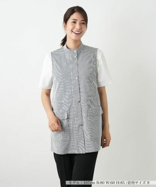 爽やかなテイストのナローストライプが印象的なセミロング丈のスタンドカラーベスト。フロントはファスナーとスナップボタンのダブル仕様で着脱もスムーズに行えます。ウエスト内側にはドローストリングが施され、シルエットのアレンジも自在。伸縮性のある軽やかな素材感が動きやすさと快適な着心地を叶えます。これからの季節のレイヤードスタイルにぴったりな機能性とデザイン性を兼ね備えた、使い勝手のよいアイテムです。