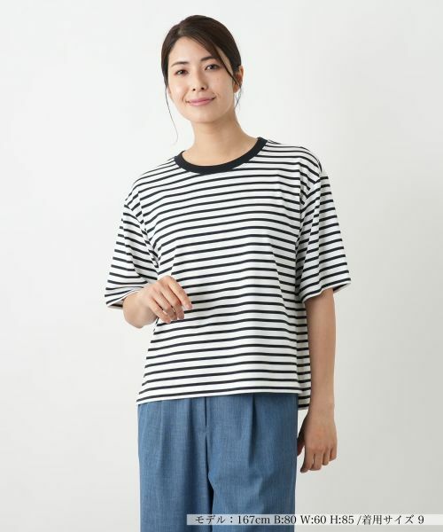 シンプルながらも印象に残る、スタンダードなボーダーカットソー。身頃はゆとりをもたせたリラックスシルエットで、前後差のあるヘムラインにスリットを加え、動きのあるニュアンスを演出。肌当たりのよいコットン生地を使い、首元はリブ仕立てで、全体のバランスをきれいに引き締めました。一枚で着映えしながらジャケットやカーディガンのインにも重宝する、着回し自在なトップスです。
