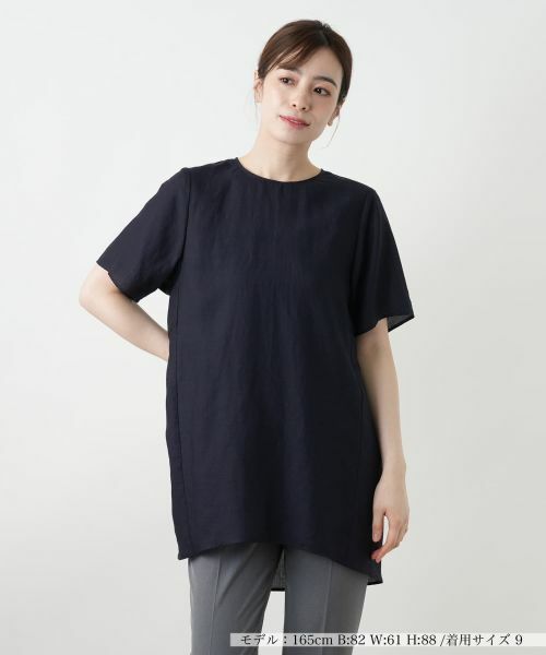 麻混の軽やかな風合いが心地よい、リラックス感漂うチュニックブラウス。フロントはシンプルに、バックスタイルは切り替えから広がるフレアが印象的。歩くたびにふわりと揺れて、背中にさりげないドラマを演出してくれます。足元は細身のボトムスですっきりとまとめるのがおすすめ。これからの季節の空気になじむような涼やかさで、エフォートレスな大人の着こなしを後押しするトップスです。バックファスナーで開閉が可能。