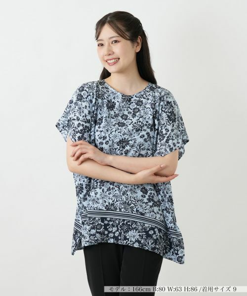 クラシカルな趣を感じさせるフラワーモチーフを、季節らしい色使いで表現したブラウス。視線を惹きつけながらも、どこか懐かしく落ち着いた佇まいに。フレアスリーブがさりげなく腕まわりをカバーし、程よい丈感がナチュラルに体型を包み込むシルエットを構築。背面にはボタンループをあしらい、後ろ姿にもやさしいアクセントをプラスしました。存在感のある主役トップスとして、デイリーにもお出かけにも活躍してくれそうです。