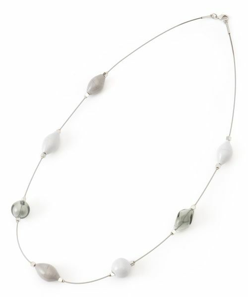 ぷくっとしたフォルムが愛らしいカラーパーツを、金属調ワイヤーでバランス良く繋ぎ合わせたネックレス。個性的で大人可愛いデザインが目を惹くアクセサリーは、コーディネートのユニークなワンポイントになってくれるでしょう。