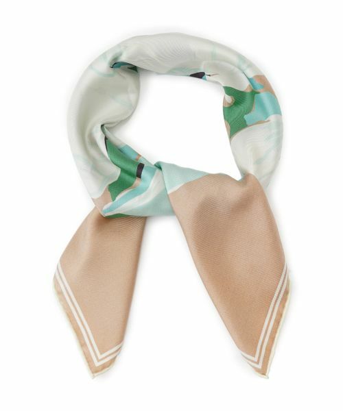 大判で様々なアレンジが楽しめるスカーフ。季節感のある深みの中に、パッと目を惹くアクセントカラーが華やかなデザインです。リボンにしたり、ボウタイ風に見立てたり、軽やかな素材のアクセサリーとして楽しんでいただけます。「ETERNAL」シリーズの一品です。