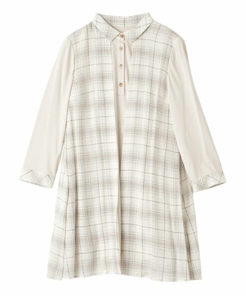 チェック柄と無地の異素材を組み合わせたコンビネーションデザインのプルオーバーブラウス。こだわりのレイヤード風デザインが目を引くアイテムは、シンプルに着こなすだけでも技あり感たっぷり。長めのチュニック丈だから、パンツとの相性は抜群です。※定価(税込)は、2022年01月02日のセール開始前の店舗における販売価格です。家庭洗濯不可漂白不可タンブル乾燥不可アイロン低温160℃まで石油系溶剤ドライクリーニング弱ウェットクリーニング不可