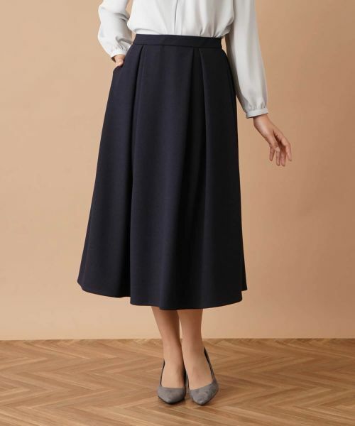 巧みなタック使いで、立体的なAラインシルエットを作り出したフレアシルエットのミモレスカート。無駄な装飾を省いたミニマルなデザインで様々なコーディネートに取り入れやすい一枚。ウエストには程よい伸縮性があり心地よくフィット。トップスをタックインすれば、スタイルアップ効果も狙えそうです。サイドはホック&ファスナーにより開閉が可能。