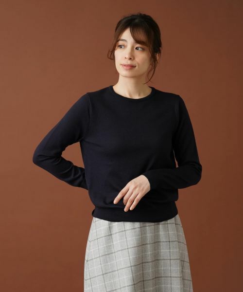 トレンドに左右されることのない、シンプルさを追求した無地のクルーネックニットプルオーバー。ハイゲージで丁寧に編み込んだニットの優しい温もりが感じられる一枚です。シルエットにもこだわり、すっきりと大人っぽく着こなせるように仕上げました。スポーティなパンツはもちろん、フェミニンなスカートとの相性もよく、様々なコーディネートに合わせやすいトップスです。------------------------------------着用シーズン:秋伸縮性:あり透け感:なしポケット:なし生地の厚さ:やや薄手裏地:なし-------------------------------------※商品の色味は、撮影場所や光のあたり具合、お客様のお使いの機器により色味が違って見える場合がございます。予めご了承ください。家庭洗濯不可漂白不可タンブル乾燥不可アイロン低温160℃まで石油系溶剤ドライクリーニング弱ウェットクリーニング不可