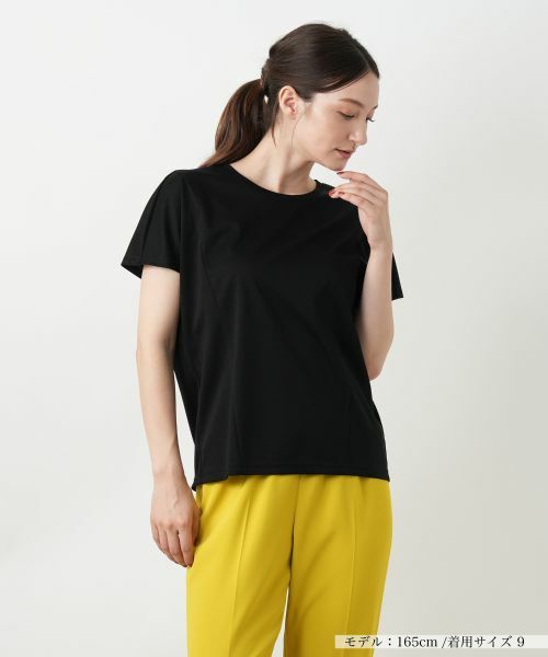 シンプルなデザインでありながら、後ろ姿で魅せるこだわりのクルーネックカットソー。背中に施したギャザーがふんわりと柔らかなドレープを生み出し、フェミニンなアクセントをプラスします。滑らかな風合いの上質なコットン生地を使用しており、カジュアルすぎず品のよい印象で着こなせるアイテム。伸縮性のある生地で着心地はストレスフリー。一枚で着るのはもちろん、ジャケットやカーディガンのインナーとしても活躍してくれそうです。
