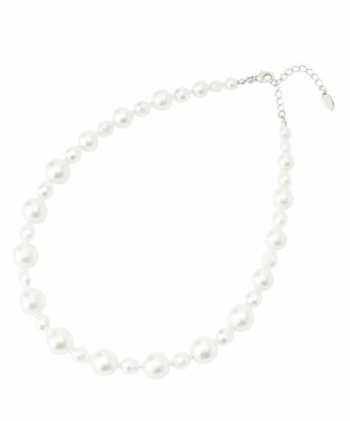 柔らかな輝きを放つコットンパールに、美しいカッティングのビジューを組み合わせたショートネックレス。大小のパーツをリズミカルに配置することで、首元に豊かな表情をプラスします。結婚式や入卒園式といったセレモニーシーンはもちろん、普段のニットやブラウスに合わせれば、ぐっと顔周りが華やかな印象に。フォーマルからデイリーまで、シーンを選ばず活躍します。