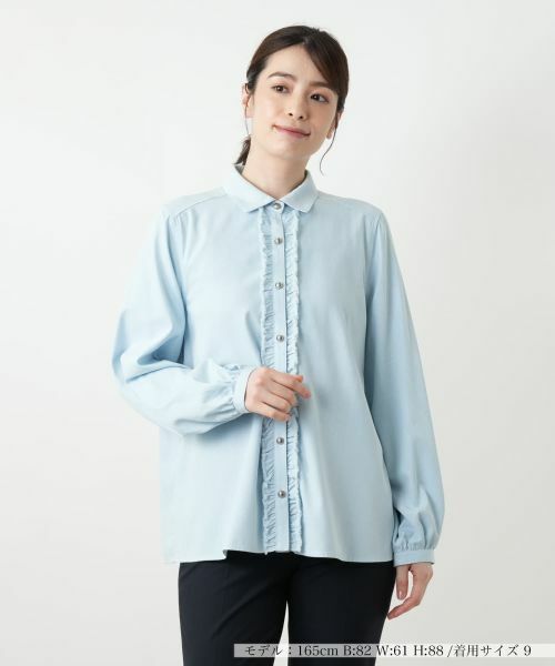 初秋のスタイリングを華やかに彩るフリルブラウス。フロントに縦にあしらわれた断ち切りのフリルが、顔周りをパッと明るく見せ、女性らしい上品かつ爽やかな印象を与えます。製品洗いをかけた薄手で軽やかな生地は程よい抜け感を演出し、涼やかな着心地をキープ。ゆったりとしたシルエットでストレスを感じることなく、リラックスして着用いただけます。一枚で主役になるのはもちろん、ジャケットやカーディガンのインナーとしても、フリルがさりげないアクセントになり、着こなしを格上げしてくれそうです。